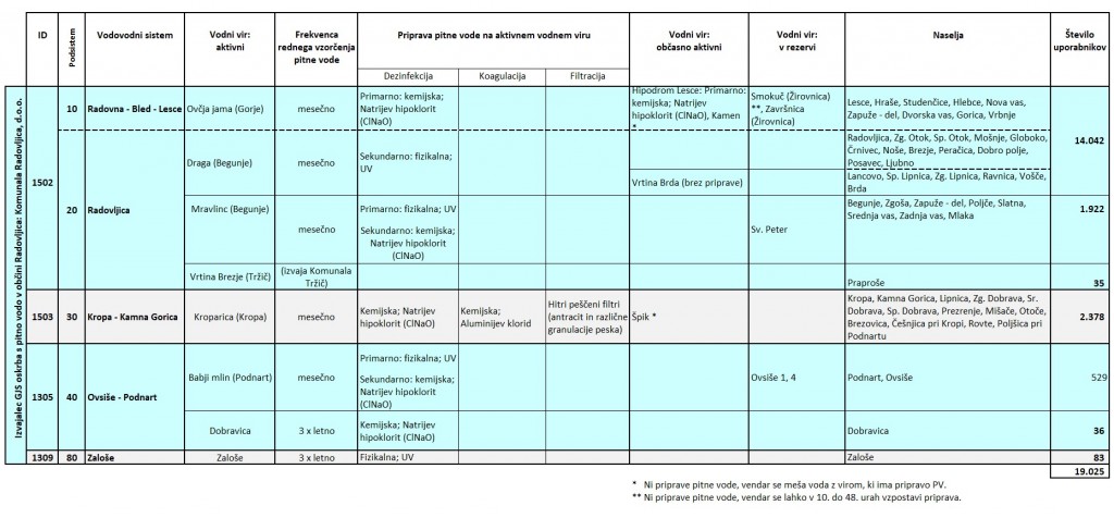 Pitna voda, ki prihaja na območje naše občine po skupnem MVR iz vodnega vira Ovčja jama, je po odločbi Zdravstvenega inšpektorata RS (ZIRS) minimalno preventivno dezinficirana s pomočjo klora. Občine Gorje, Bled in Radovljica si prizadevajo čim prej vzpostaviti pripravo pitne vode s pomočjo UV-dezinfekcije.